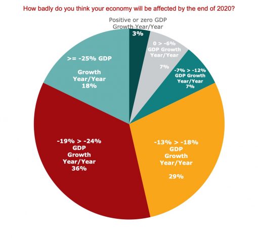 - There is strong concern among IPAs regarding concern the seriousness of the impact of COVID 19 on the economy in 2020. 30% of respondents believe that GDP growth could be down by 15%; 36.7% that it will drop 20%; and 16.7% that GDP will fall by 25%. Only 3.3% anticipate that the overall impact will be zero.